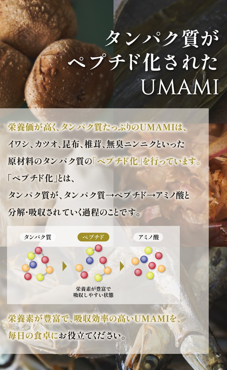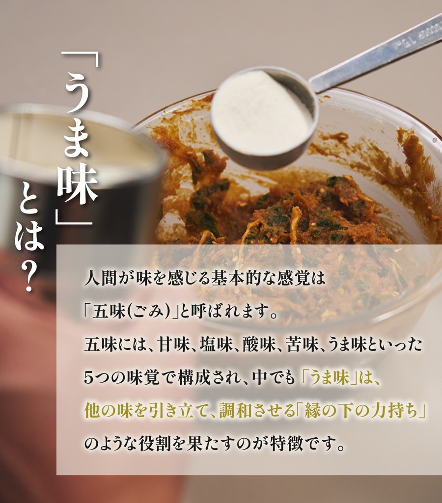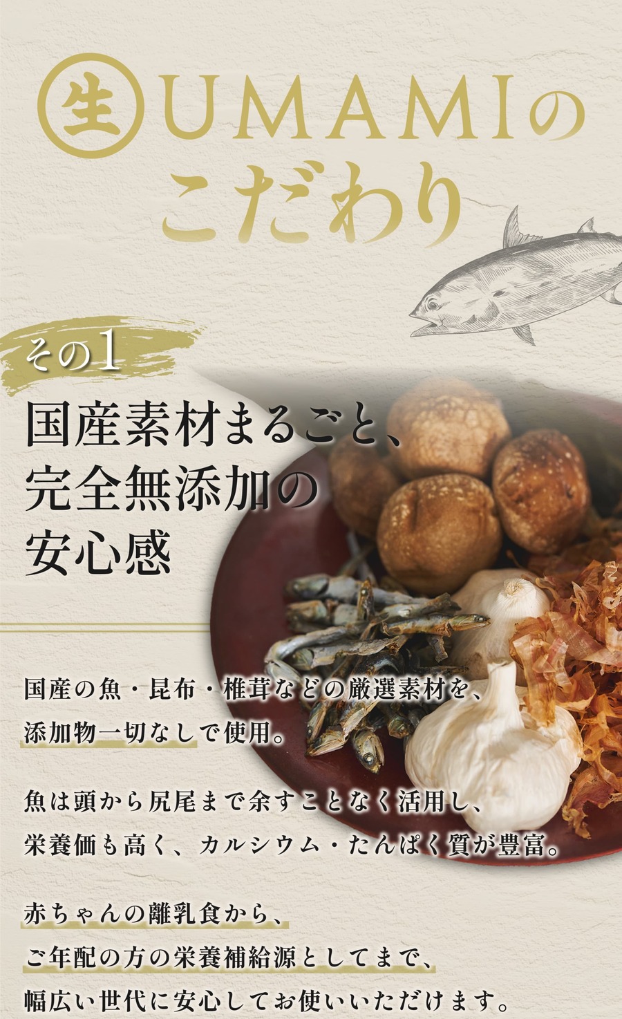 昆布・椎茸・魚・野菜といった日本の素材だけで、「うま味」を濃縮した、唯一無二の万能調味料です。